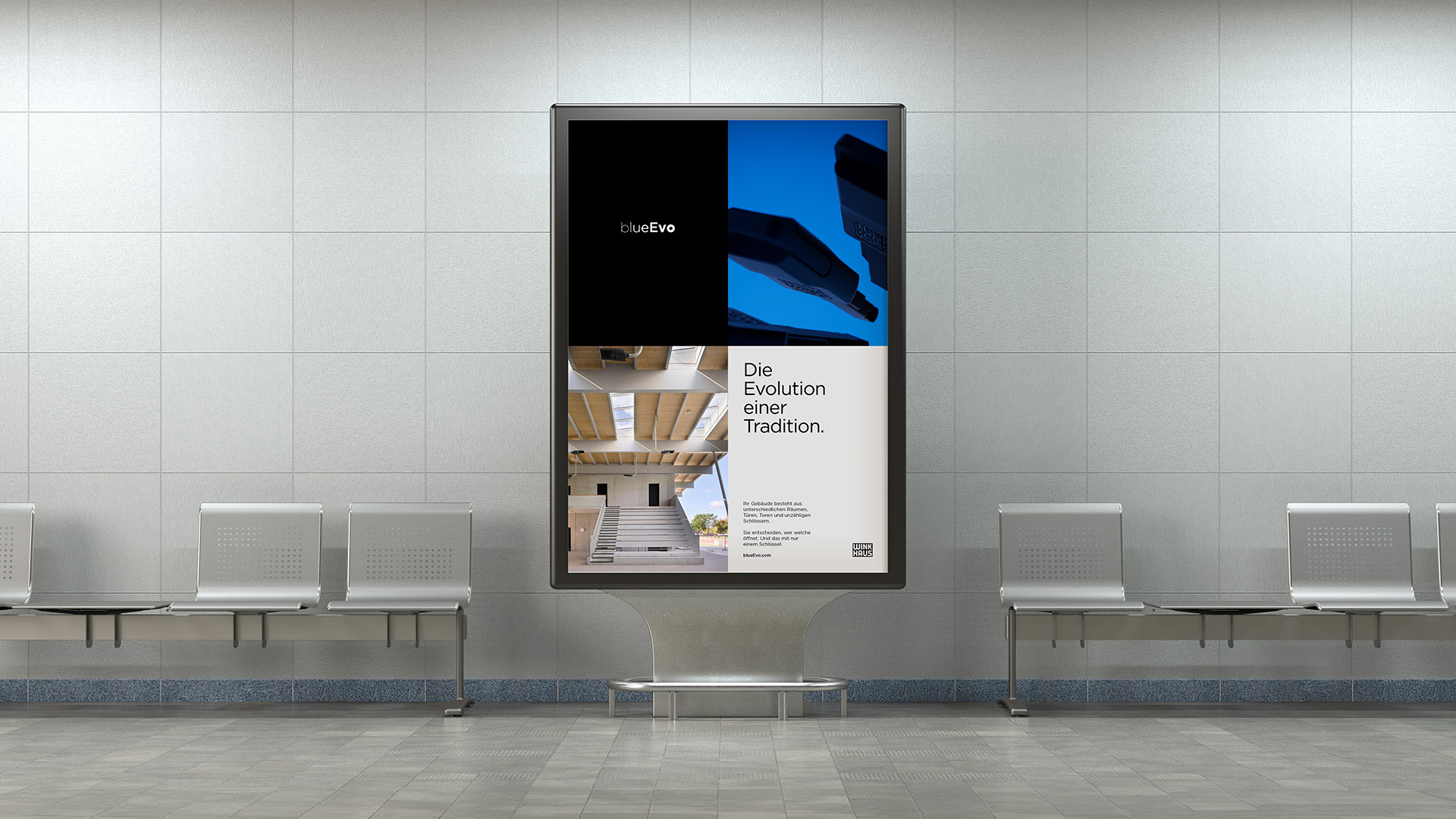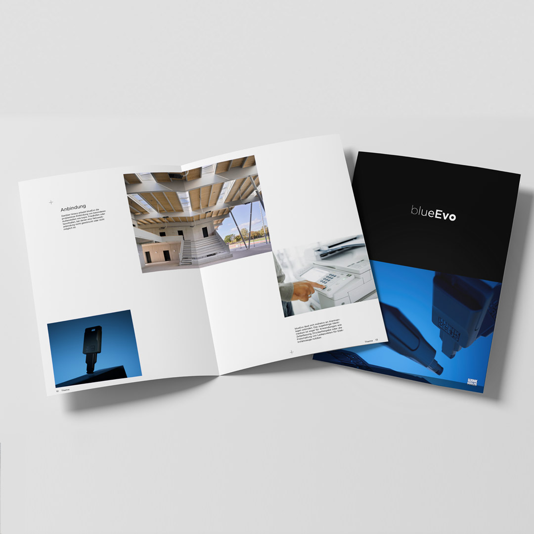 Das flexible Raster wird auch in den blueEvo Broschüren sichtbar. So entsteht eine einheitliche Wahrnehmung des neuen Brand Designs.
