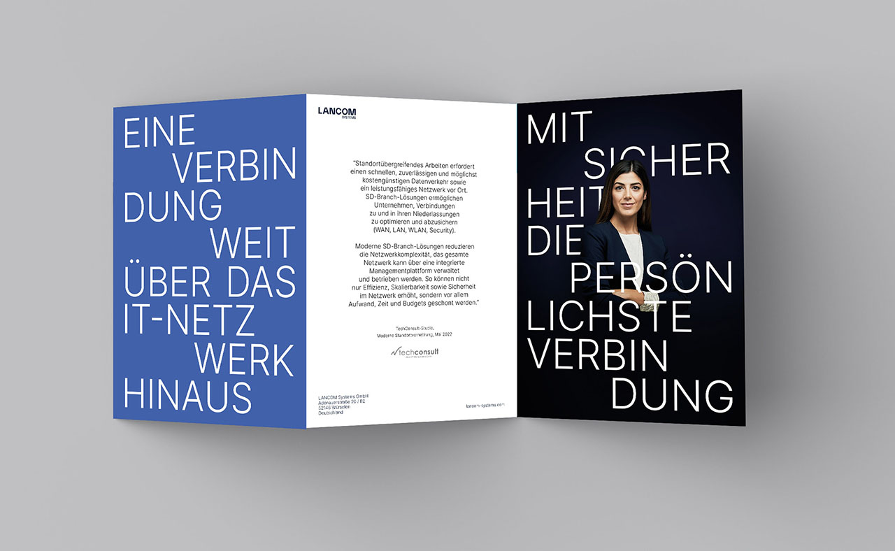 Lancom setzt auf eine neue, persönlichere Kommunikation und stellt die Wertschätzung für ihre Kunden in den Mittelpunkt. Das gesamte Brand Design ist auf dieses Ziel ausgerichtet. Durch klare, authentische Kommunikation mit dem Kunden erreicht Lancom eine neue Wertigkeit.